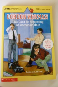 There are six books in the series; the first is This Can’t Be Happening at Macdonald Hall, which Korman wrote and published when he was twelve. He wrote most of the others during high school, which frankly boggles the mind a bit–especially because they’re brilliant. The first one involves Bruno and Boots being split up as roommates because they commit one too many pranks; Bruno, of course, has endless ideas on how they can convince The Fish to put them back together–mostly ideas involving new pranks.