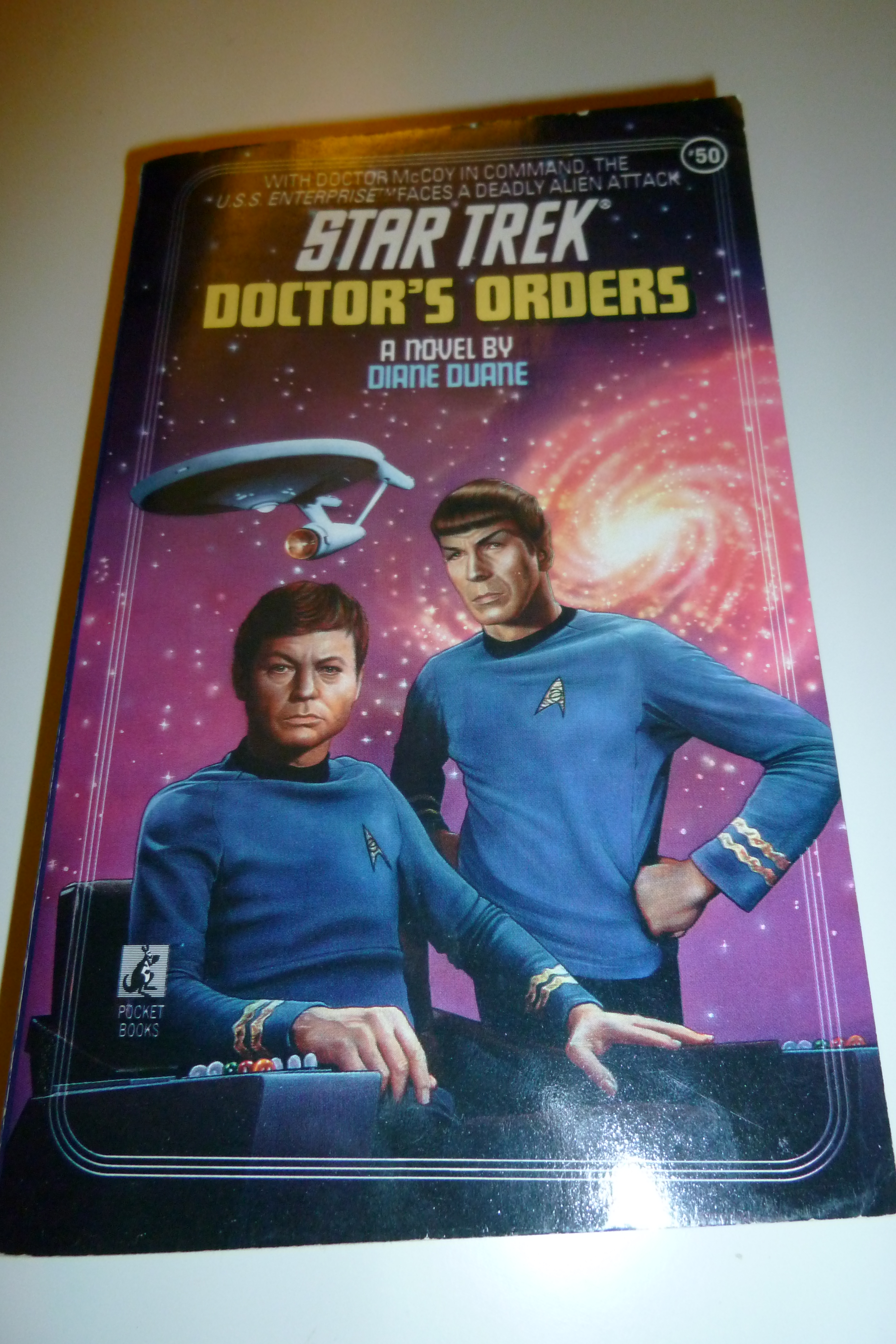 Dr. McCoy grumbles at Captain Kirk one too many times, and Kirk leaves him in command while he beams down on a routine scientific mission. When Kirk goes missing, it’s up to McCoy to command the ship, facing hostile Klingons, Orion pirates, and some very mysterious aliens. I love McCoy, and this is McCoy at his finest. There’s also a great line in here (which of course I can’t find right now)–in the midst of all the problems, McCoy still manages to score a point in an argument with Spock; he reflects that it would be a poor day indeed if he couldn’t manage to needle Spock a little. This should be engraved on a plaque for every Star Trek writer–if they’re not needling each other, it’s not Star Trek.