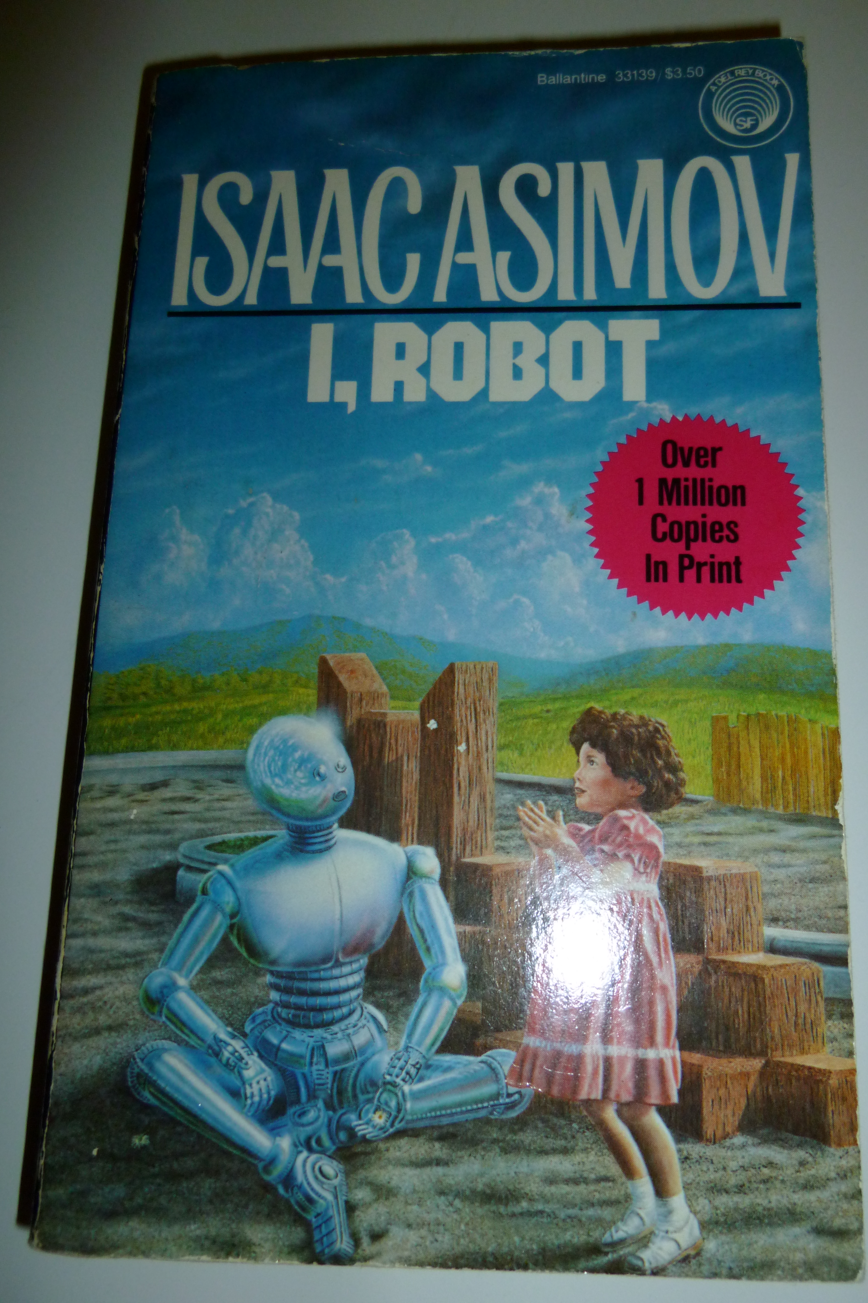 I always thought this was a collection of short stories, and it is, but they’re far more inter-connected than I had expected. They’re set in what, at the time of writing, was the future (although we’ve since caught up). It’s a world like ours, except humans have built advanced robots. They’re exactly what you’d expect of science fiction robots (maybe they set some of the expectations!)–metallic, roughly humanoid, capable of walking and talking and performing a surprising amount of what at least looks like independent thought. They’re governed by the famous Three Laws of Robotics.