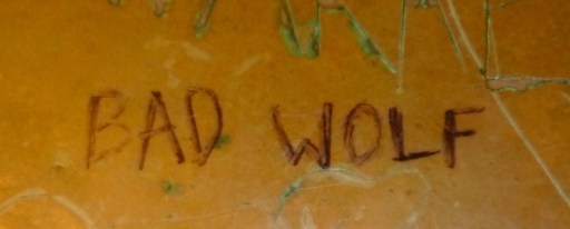 Doctor Who fans will know that “Bad Wolf” is a recurring phrase throughout the first few seasons of the new series. It’s something that shows up in random places and in the backgrounds of scenes—like in graffiti.