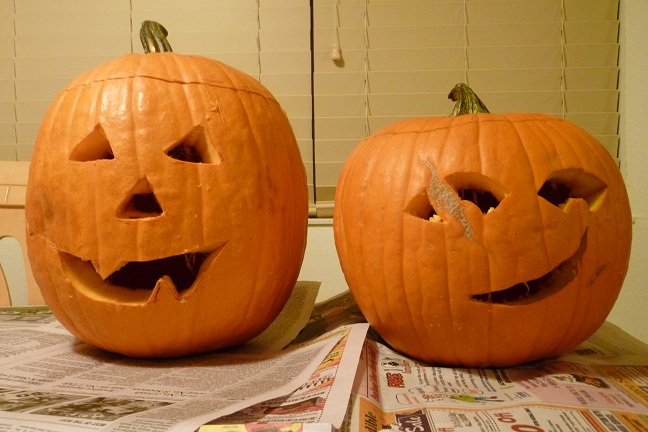 I went over to my parents’ house this week, and carved pumpkins with my dad.  It’s a tradition. 🙂