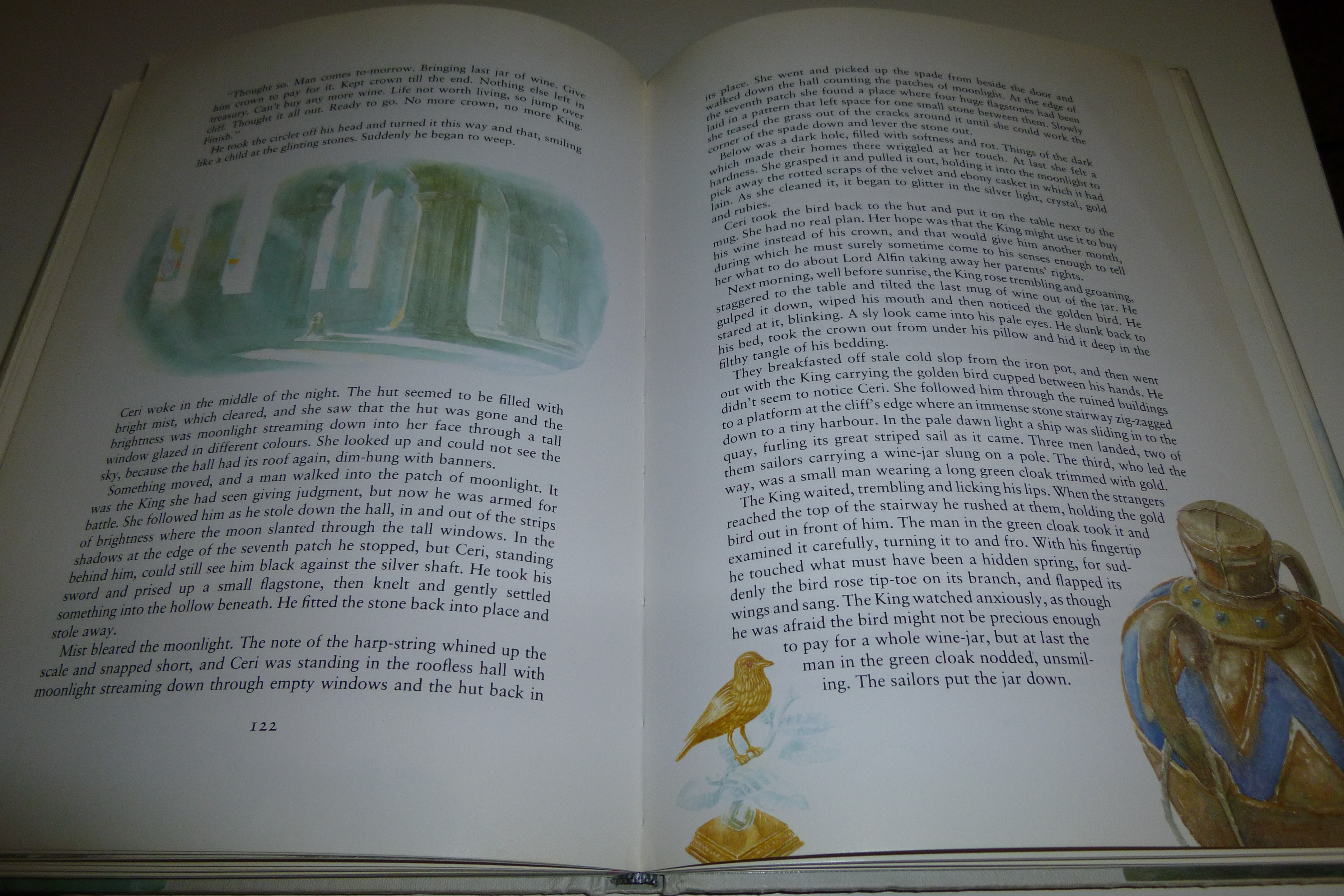 This is generally put in the kids section, and I think the short stories are definitely good for kids. A word of warning that some of Merlin’s reflections are pretty dark. And as beautiful as most of Alan Lee’s illustrations are, some could be disturbing for a smaller child.