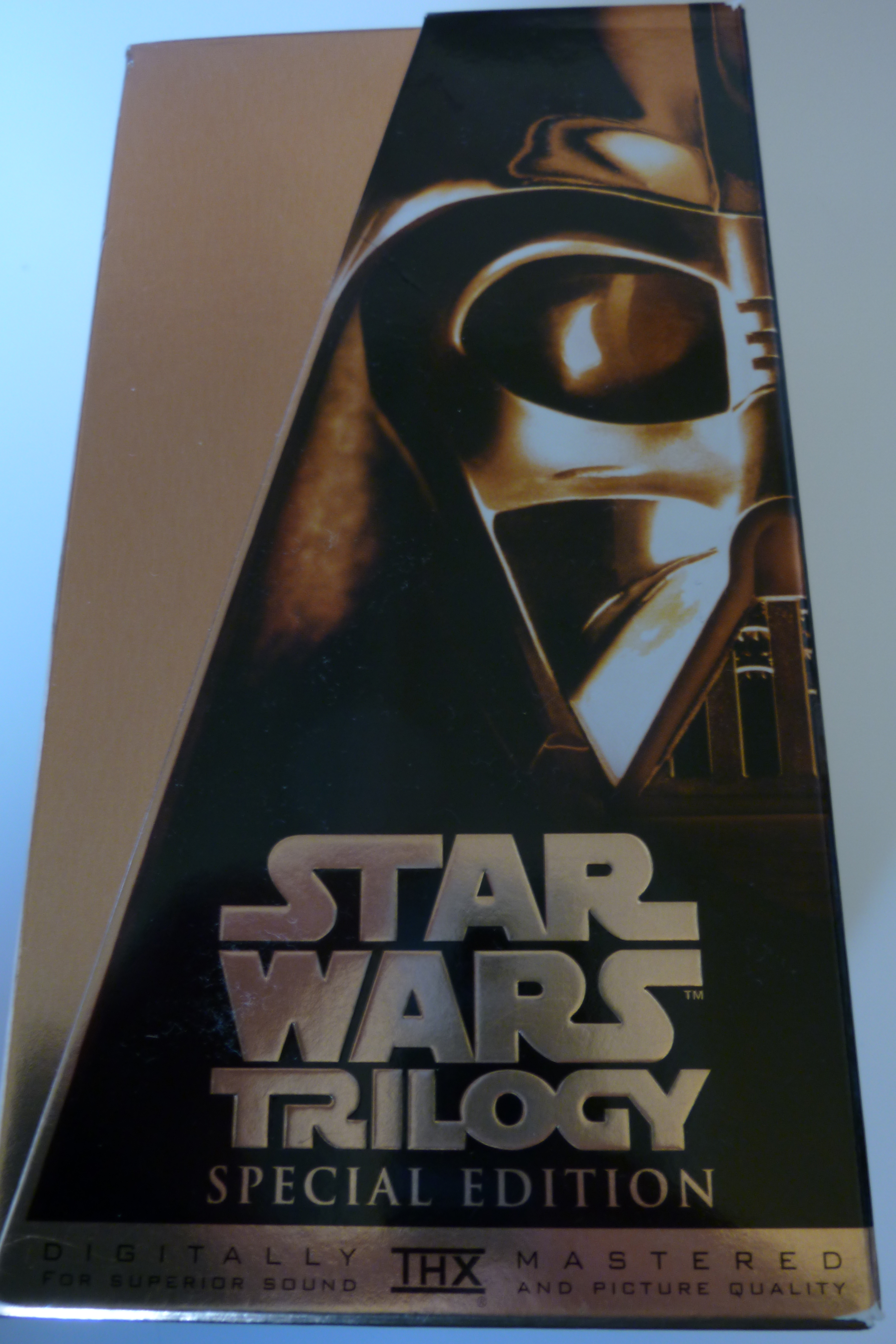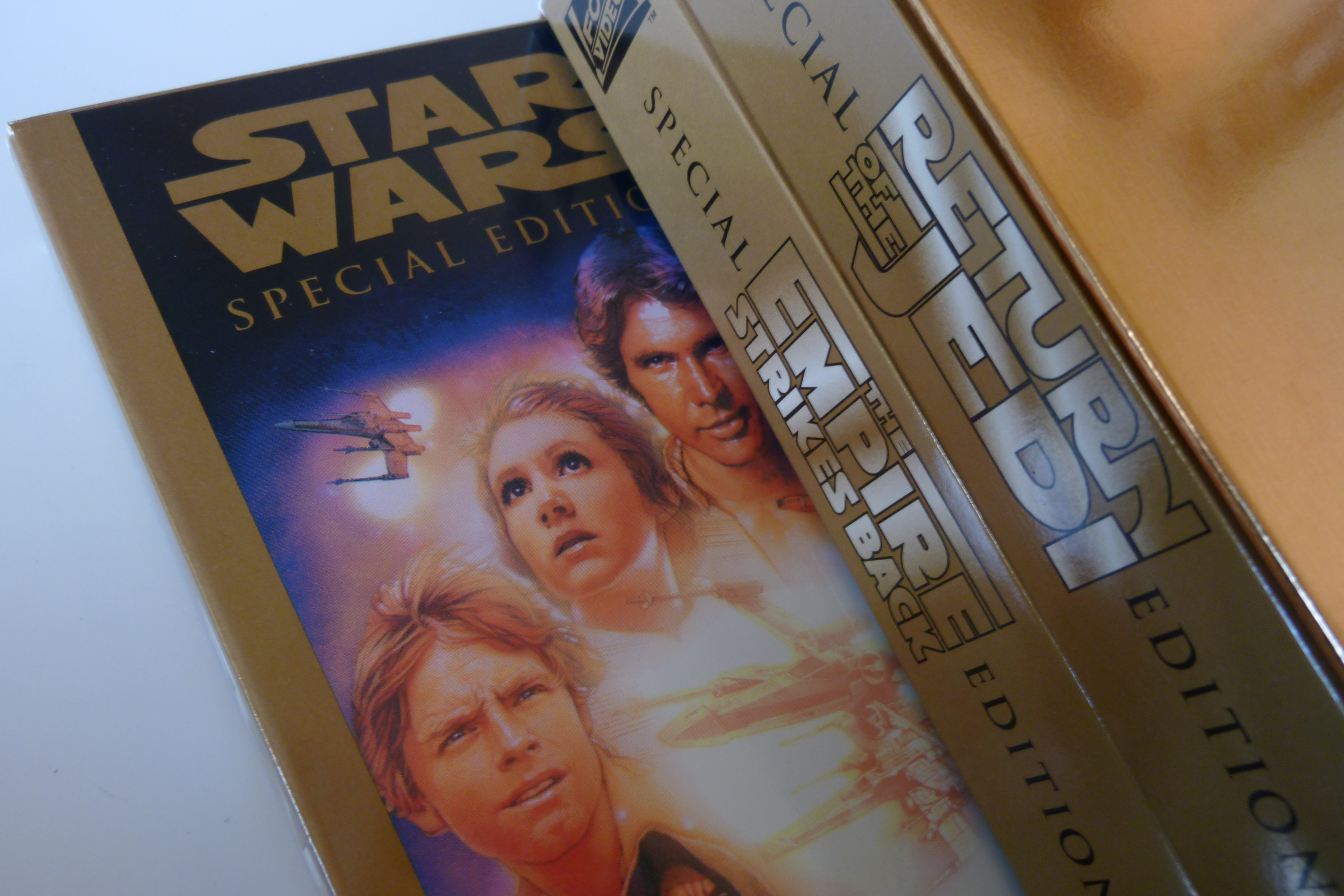 All of this is to say that I identify as a Star Trek fan, but I like Star Wars too, and there was a time when I really liked Star Wars.  And lately I’ve been thinking I’d like to revisit the galaxy far, far away.  So, over a recent weekend, I dug out my very old, shiny gold Special Edition VHS tapes of the original trilogy (a very big deal purchase when I was much younger!) and rewatched all three movies over three days.